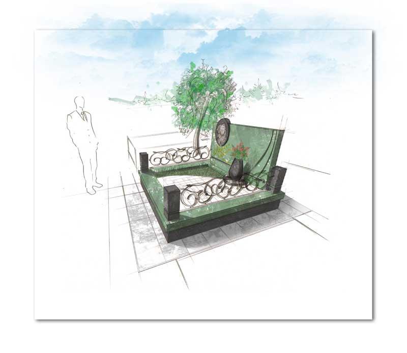 Дизайн памятников требует выдержанности и выветренности выбранного стилистического решения. Композиция учитывает все важные моменты и рассматривается исключительно в комплексе. На этапе разработки эскиза подбираются изобразительные приёмы, с помощью которых удаётся добиться оригинальности и стильности решения.