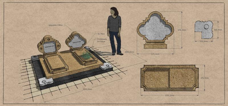 - Размеры. В каталоге представлены стандартные размеры надгробий. Но изготовить их можно и по и индивидуальным параметрам, например, при заказе сложного по конфигурации комплекса.