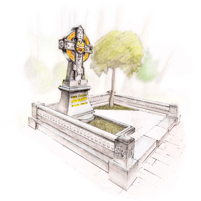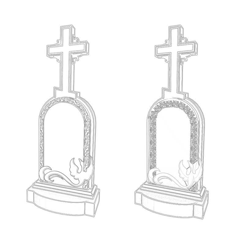 Разработать и воплотить его в готовое изделие помогут дизайнеры и мастера нашей компании. Оформление включает в себя выбор материала и других декоративных элементов — расположения портрета и написания дат.